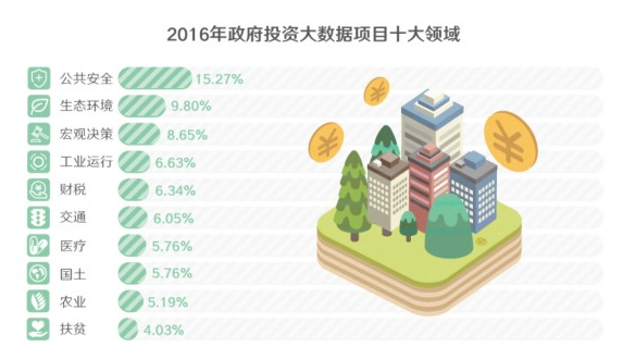 政府投资的大数据项目主要聚集在公共安全、生态环境、交通、医疗等民生领域。除此以外,大数据能够推动我国政府决策和经济运行更加精细、科学,宏观决策亦是政府投资的重点领域。