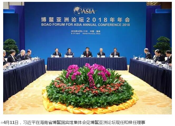 4月11日,习近平在博鳌集体会见博鳌亚洲论坛现任和候任理事时指出,“一带一路”不像国际上有些人所称是中国的一个阴谋,它既不是二战之后的马歇尔计划,也不是什么中国的图谋。